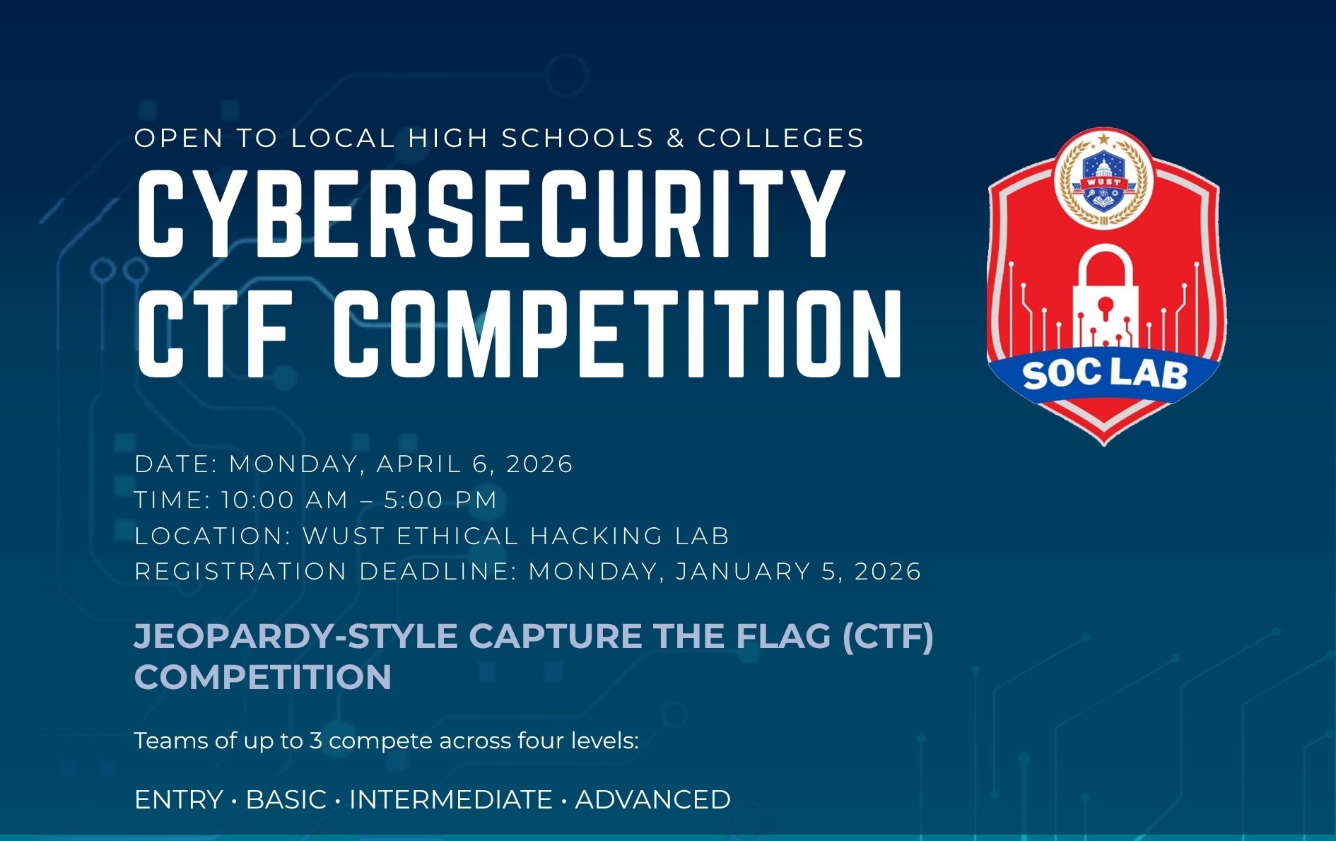 WUST Capture the Flag (CTF) Ethical hacking Competition 2026 brings students together for an exciting day of hands-on cybersecurity challenges. Teams compete across three escalating levels that test practical skills like network reconnaissance, credential discovery, database forensics, and privilege escalation. The event is beginner-friendly while still offering advanced problems for seasoned participants.